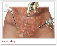 Laparoskopi, karın içini, optik bir cihaz kullanarak gözlemlemektir. Bu cihaz 1 cm.lik göbek altı küçük bir kesiden karın içine yerleştirilir.